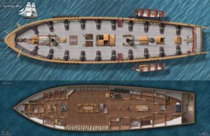 My second choice was Dangerous Seas, part IV of the Deck Space series, bought as a gift for my husband who loves history and historical gaming as well as RPGs. ($13.99 poster/$4.99 PDF) The main map is the upper and lower decks of an historical Age of Sail brig, the Niagara. Yes, you could probably do a naval wargaming (or pirate!) miniatures scenario with a couple sets of this, if you have the appropriate scale minis, or tokens. But I hope there are more ship maps in the future, for these types of scenes.