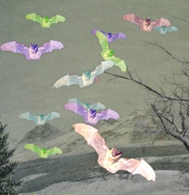 Art: Glowbats brighten up the dusk at the end of an overcast day on Spintir. Image © 2021 Linda Whitson