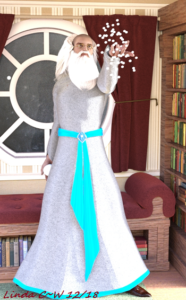 Alex favors the 19th century garb of his (actual) youth, in shades of white, silvery-gray, and silver. When acting officially as the Winter Warlock, especially in his home dimension, Alex dons fur-trimmed white wizard’s robes and magically “ages” his features to those of an older man, a stereotypical wizard.