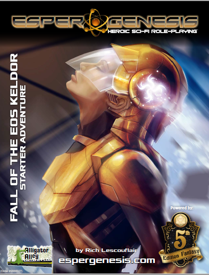 This free module intrigued me in two ways. First it was for EsperGenesis, an upcoming science fiction RPG based on D&D 5e’s Open Gaming License. Second, it is published by Alligator Alley Entertainment, a company based in Florida, my home state. I couldn’t find out a lot about the company, other that it is less than a year old, incorporating in March of this year. EsperGenesis is due to release in 2017.