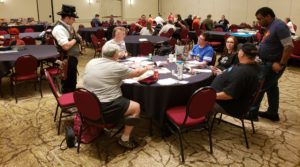 Conapalooza has been around for a few years as a multidiscipline convention anchored by celebrity appearances while it dabbles in every type of geek culture along with a decent gaming presence. Craig’s table was in the dealer’s hall which was six or more rows of vendors (toys, art, comics, Pops, books, jewelry, games, and more) and celebrities (Marina Sirtis, Michael Biehn, Power Rangers, and more). Outside of the dealer’s hall were a few more vendors and a separate wing of the hotel for the panels, tabletop gaming room, video gaming room, silent auction rooms, and dance hall. The convention managed to offer something for everyone.