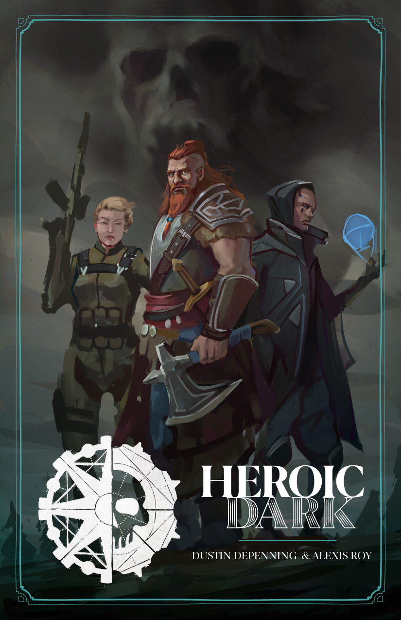DUSTIN: You start off with a session zero where the GM and players build a game setting together piece by piece. You choose thematic elements and answer interesting questions, and in about thirty minutes you have a one of a kind game setting on the edge of oblivion. The players then use open-ended archetype rules to design custom characters, and the GM uses streamlined NPC rules and conflict planning to generate dangerous missions for those characters. Everything is tracked by a world health sheet where the players’ actions are measured to result in a thrilling conclusion: do the heroes save the day? Or does darkness reign supreme? As far as comparisons to other systems, Heroic Dark is inspired by the genre flexibility of games like Fate, but wants things harder on the players, situations to be more dangerous, and make failure a real possibility.
