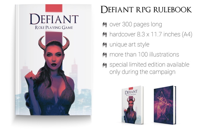 Kate (Katarzyna Kuczyńska) and Martin (Marcin Kuczyński) of Game Machinery have a new project on Kickstarter, Defiant. This RPG, in Martin’s words, is “a tabletop RPG set in a modern, urban-fantasy world. You get to play as supernatural aristocrats – angels, old gods, dragons in human forms, and demons. You are a part of the local establishment, governing and protecting the city that would have otherwise been destroyed by the raging Apocalypse. Defiant is a game focusing on social interactions, personal goals, and desires, all the perks and issues of being in a position of power and responsibility.”