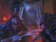 Long rusted utensils and knives hang from nails on the wall, while an open fireplace sits in one corner. A dirty and disgusting table sits in the middle, covered in what fungus, over what must have been a corpse at some point. One that has clearly had parts eaten from it.