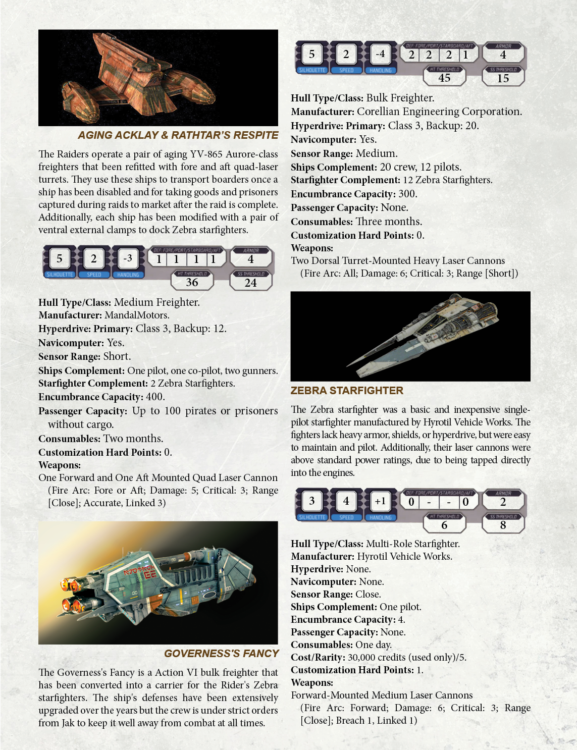 Regardless of the target or strike force, the riders favor fast and decisive surprise attacks. By the time escort ships pick up the pirate vessels on their impaired sensors, they are already under fire. The Riders try to cripple the escort vessels on the first pass, boarding the score quickly and offloading as much cargo as possible before fleeing reinforcements. For their remarkably ruthless reputation, the Riders don’t tend to kill unnecessarily – Big Jak knows that slaughtering dozens of passengers is going to cause more trouble than it is worth and keeps his crew on a short leash.