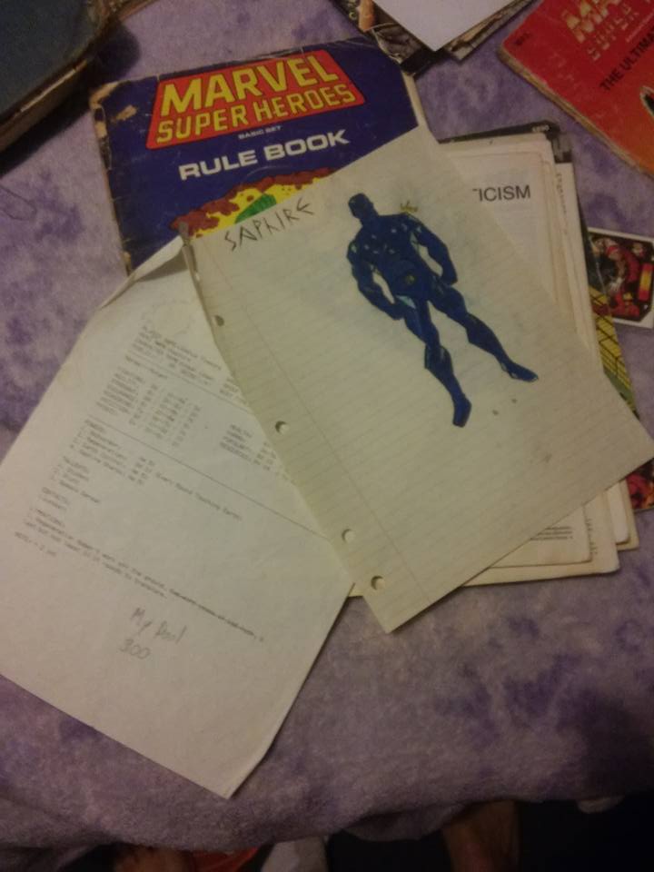 As an avid comic book collector of Marvel comics, the Marvel Super Heroes roleplaying game caught my attention like no other. I was like, “I can play Spider-Man?” And my friend Joe replied, “Yes!” And so I did. However, unfortunately, I (Spidey) died in a trap, made, I believe, by Doctor Octopus… The next day I couldn’t stop talking to Joe about the game. That is when I found out about the most amazing aspect of the roleplaying game. I can make my own superhero and play him or her in the Marvel Universe!!! Woohoo! Let the Random character creation begin! I now have binders full of all sorts of characters.