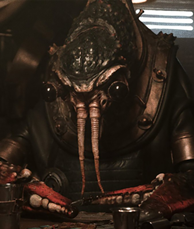 An allegedly notorious sabacc player known to frequent the Vandor’s Fort Ypso Lodge, this Nephran gambler relies on intimidation to unbalance his opponents. He demands other patrons refer to him as Therm Scissorpunch. Whether this nickname was earned, or self-invented, is unknown. Veracity aside, the nickname refers to the very real shank implanted in Therm’s left claw.