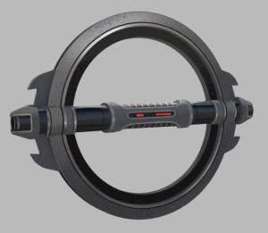 Eighth Brother’s lightsaber appears, on first inspection, to be of a similar build to the other Inquisitor’s weapons, but the press of a hidden switch extends metal teeth along the circumference of the outer handle, turning the hilt into a hand-held buzzsaw.