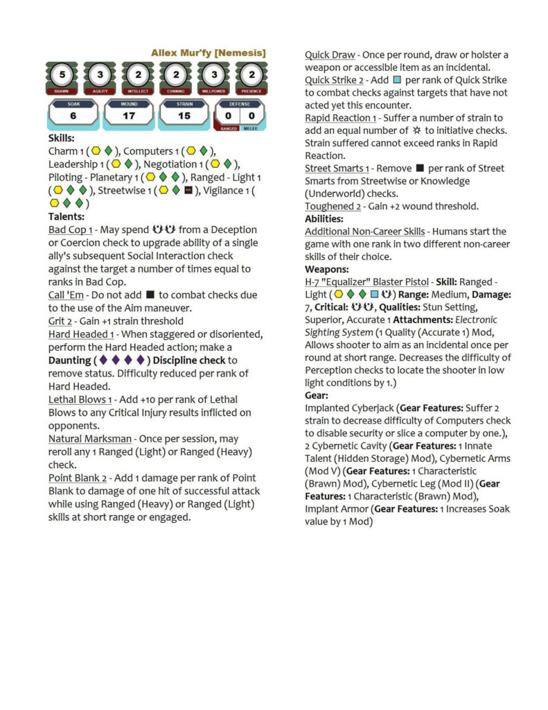 Allex Mur’fy was just an average man from an average world in the Colonies working as a respectable Sector Ranger, but he felt he was destined for more from life. He answered the call for experienced law enforcement officers to relocate to the Outer Rim colony world of Ord Dt’Roit. Heeding the call of adventure, and a hefty relocation bonus, Mur’fy took his wife and young son to create a new start on Ord Dt’Roit. Little did he know about what awaited him there.