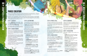 Currently, the book is focused about giving you the foundation to develop your own story, but shares snippets of a world we’ve already designed, Nominal City. More setting lore is to come with future books.