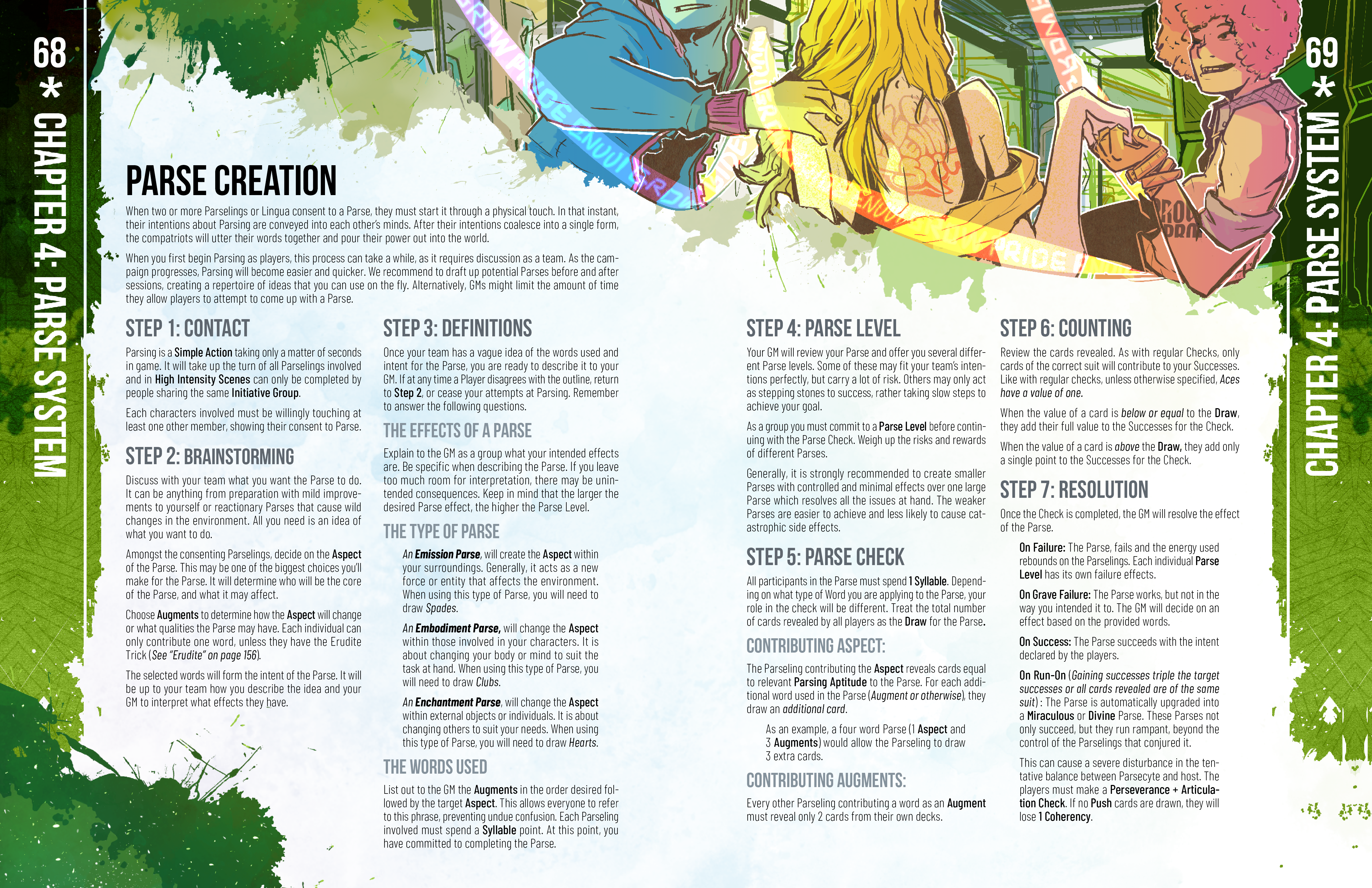 Essentially, players step into the shoes of a Parseling, a human infected by a magical parasite and branded by words that describe them. When they use these words in phrases they can create reality warping magic to do whatever they want. As you can imagine, this leaves the story direction fairly open, and it can slip into many different settings.