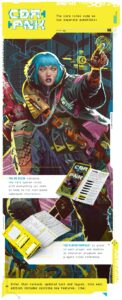 With my gamer interested and a genre in mind, the next bit of luck was reading the CBR+PNK: Augmented Kickstarter from Mythopoeia and The Cabinet of Curiosities. I pulled it up for my weekly column at EN World and the concept and format grabbed me. CBR+PNK is a well-considered, fiction first, streamlined Forged in the Dark cyberpunk RPG. That’s all fine, but the winner was a double-shot of what I needed. First, the RPG is done as a pamphlet. That’s right, an RPG on a few pages. Second, to get more backers to eye the Kickstarter, Emanoel Melo made the first edition of the game free during the campaign on itch.io.