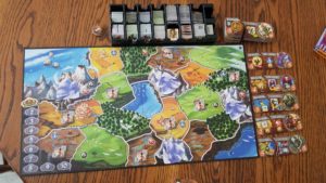 Each round, you earn score, gold coins, based on how many board tiles you control. Some races give bonuses for controlling certain terrain. But the game is designed to have your power fade round to round. You only have a fixed population which limits maximum expansion. After only a few rounds controlling any race, you’ll reach a point where expansion becomes impossible and it will be a downward spiral as your territory is taken over by other races and you can’t muster the strength to take it back. Once that happens its time for a new people to rise to power.