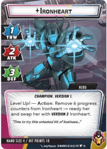 • Level Up!Action: Remove 6 progress counters from Ironheart → ready her and swap her with Version 2 Ironheart.