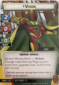 - While in hero form, Vision gets +2 ATK and +2 DEF.