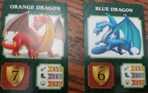 The monsters, creatures as the game refers to them, are all worth a certain amount of victory points. The player who has the most at the end of the game, wins. The points range from one to seven with the two dragons being worth the most. The higher the victory point value, the harder a creature is to capture. The game ends when both dragons have been defeated or the Adventure deck has been reshuffled twice. So far all our games have ended with the dragons being taken.