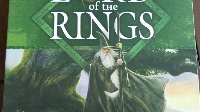 Despite being kind of a geek, I didn’t read The Lord of the Rings until college. The movies were about to come out and this cute girl said she really liked the books. So I sat down one summer to read them. While I don’t regret doing it, I’ve never had an inclination to go back and read them again. But now that same cute girl has been playing the online game with our son and he began to ask questions about the story. Neither of us wanted to read it again, but fortunately, there are three very fine movies. This, in turn, led into digging through our game closet and finding several Lord of the Rings themed games. One of which was a cooperative game called, simply, The Lord of the Rings. We had played this at a friends house. I remembered liking it and then a few years later I picked it up for us. How does it hold up?