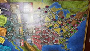 Powergrid does encourage some cutthroat tendencies though so be cautious who you play it with. Some people like that kind of game play, but others do not. There are a lot of ways to screw other players over. During the first phase of the game, only one player can build in each city. You can use this to cut people off, making it really expensive for them to expand. You can also buy resources you don’t really need just to force people to pay more for their resources. Or bid up a powerplant unnecessarily high just to drive the price up. That carries a risk but most actions do.