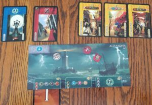 There are quite a few expansions for 7 Wonders out there. I have not tried any of them but some look appealing. The Leaders expansion adds leaders to the game which are new cards you gain at the start. It seems straightforward enough with just new symbols to learn. The Cities expansion does not look appealing as one of the nice aspects of 7 Wonders is, while competitive, each player is more or less playing their own game. You can burn a card for your wonder specifically to deny another player the chance to get that card, but that’s the extent of your ability to affect others. You need to pick a card to burn in that case so it’s not even very cutthroat. Hard to say how cutthroat Cities becomes but I wouldn’t want the game to veer too far away from the city building aspect.