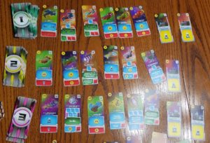 The only downside to the components comes when you’re trying to slot cards above the player game board. You do this a lot but it can be frustrating to do. The cards do not slide underneath each other most of the time without picking them all up. It is also easy to accidentally slide the player game board over top of your cards and lose some underneath it.