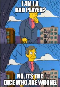 Clearly, you didn’t lose because of anything you did. You’re awesome. Your opponent is an idiot who got lucky. The dice gods ruled in his favor and are punishing you. You have nothing to do but destroy those dice and find new ones. Better ones. Infallible ones.