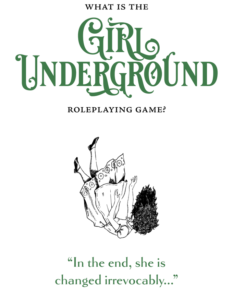Girl Underground, one of the most popular campaigns among the projects from last February’s Kickstarter Zine Quest initiative, is an RPG zine in which you play one of the titular Girl’s strange traveling companions as you journey through a whimsical realm. It’s not a direct adaptation of a mass media property, instead it is “inspired by Alice’s Adventures in Wonderland, The Wizard of Oz, Spirited Away, Labyrinth, and similar tales.” Using the Powered by the Apocalypse RPG system, you portray one of the strange companions and, at certain intervals, you take turns playing The Girl. In this fantasy game, The Girl is a 12-year-old from the late 1800s or early 1900s (or whenever you feel works best) that came to the Underground (think Oz or Wonderland) to explore this world, “question how girls ‘ought’ to behave,” and complete a quest before returning home.