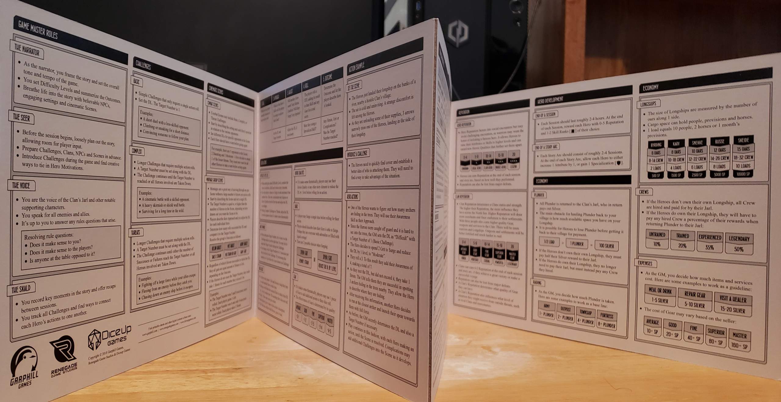 This is an RPG that could be both problematic and wonderful because it’s based on a version of historic Vikings. Problematic in that Vikings were a violent culture known for their brutality and abuses. Wonderful in their degree of social acceptance and the greater amount of equality certain women enjoyed compared to other historic cultures. This game embraces the forward-minded portions of historic Vikings while working to reduce the horrible details to a more PG-13 setting. It is not family oriented, but it hews closely enough to ensure it’s not outrageously Viking. That said, this is a game that might benefit from having the X-Card on deck – John Stavropoulos’ concept to address when the story gets out of hand and a player/GM wants to move on – in case any PC goes full Viking.