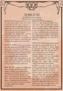 The physical book meanwhile is in great quality – those who’ve ordered print-on-demand books from DriveThruRPG will know what they’re getting. It’s 10.5 x 7.5 inches, which is a tad bit smaller than most gamebooks, making it stand out on a bookshelf. Paper quality is good as well, and there’s really nothing to complain about. The font is even slightly more readable (though not enough so, in my opinion) when compared to the PDF.