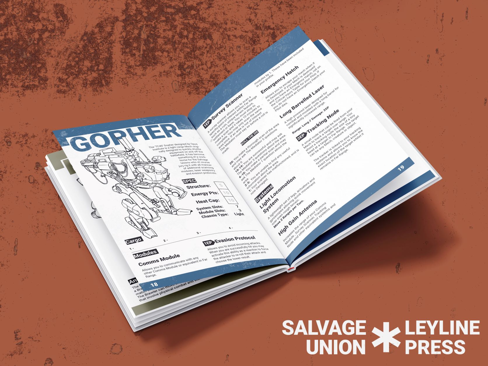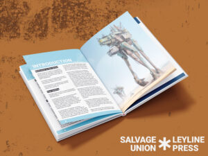 “Salvage Union is a post-apocalyptic Mech tabletop roleplaying game powered by the Quest RPG.”