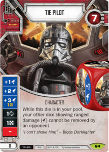 - Having two different TIE Pilot dice (from two characters or Training Upgrade) means they protect each other