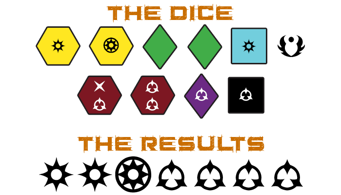 DIFFICULTY: The Princess is a lackluster negotiator, with a Presence of 3 and a Negotiation of 1. She does however have 1 rank in the talent Congenial which allows her to spend a point of Strain and upgrade the difficulty of the Negotiation check once. The GM announces that due to recent troubles between the Free City of Nerekhall and Tamalir, the check will have two Setback die applied. Caslaan’s player mentions that his character is familiar with the current machinations of the two cities and wishes to apply his Knack for It talent to remove the two Setback dice. The GM also announces that the Advisers are not all that they seem and adds a Setback die to the check. The final skill dice pool is: