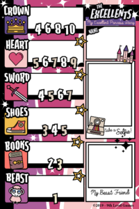 ADRIEL: The big thing is the GAME DIARY. It’s a book where you can put your princesses, like a character sheet book. And draw pictures and keep stories of your adventures. It also has awesome premade princesses like Dungeons Princess, Dragons Princess and Ceral Princess.