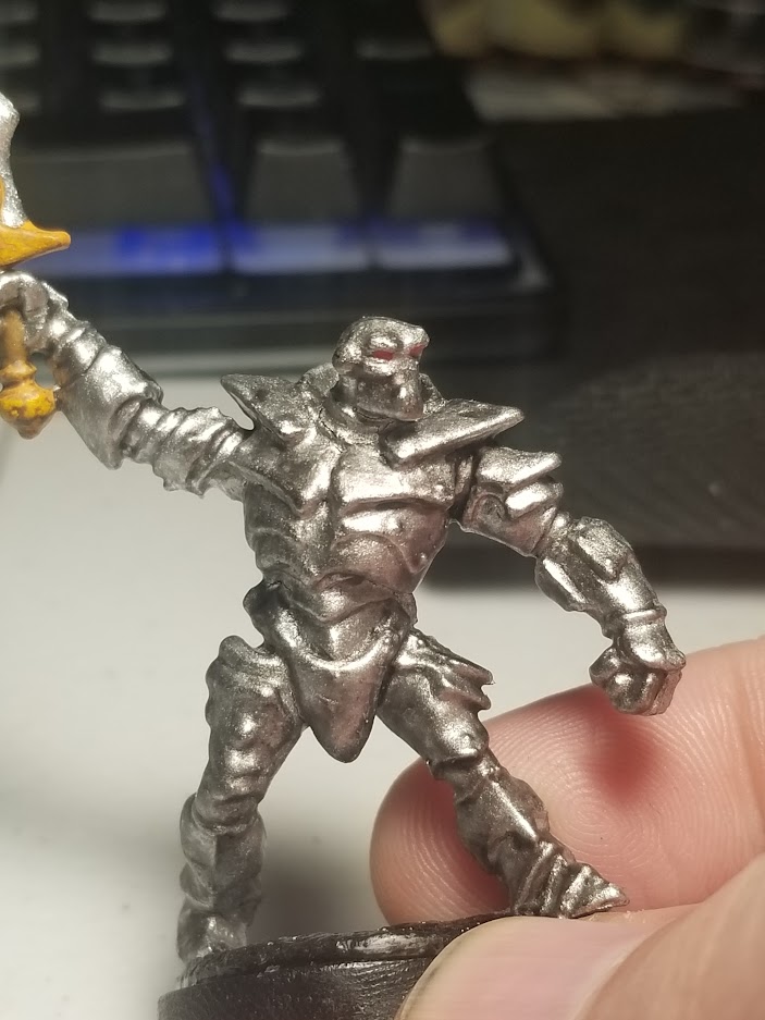 But what caught my ear was hearing the owner tell me that they also produced some of the best metallic paints that she had ever seen. The game I’m running is Eberron, and Eberron means Warforged. In fact, it was this same shop where I picked up my soon to be painted Lord of Blades figure that I promptly terrorized my players with by sending photos to the group Discord. I had also picked up several other packs of Warforged figures already in my time at the shop.
