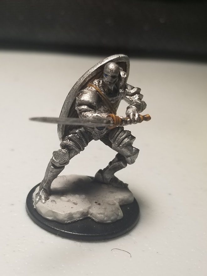 And then I sat down with a Warforged mini from Reaper Bones that I had had in my collection for a while and decided to use as my test model and started painting.