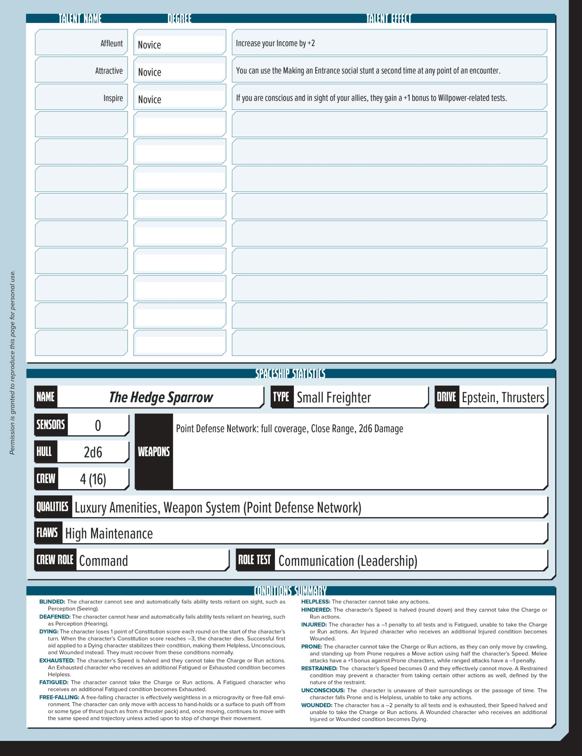 Of course, life on the float isn’t easy, nor is it simple. And there are those that thrive on preying upon the naivete of a rich Earth girl with more drive and vision than sense. You’ve had to take on a number of jobs that are unrelated to your big picture just to keep your ship sealed against the vacuum, water in your tanks, and food in your belly. And you’ve had to make compromises on some of those jobs that still don’t sit right with you. But you’ve also made some friends up here as well – though the truest of them is still the man who fled Earth with you.