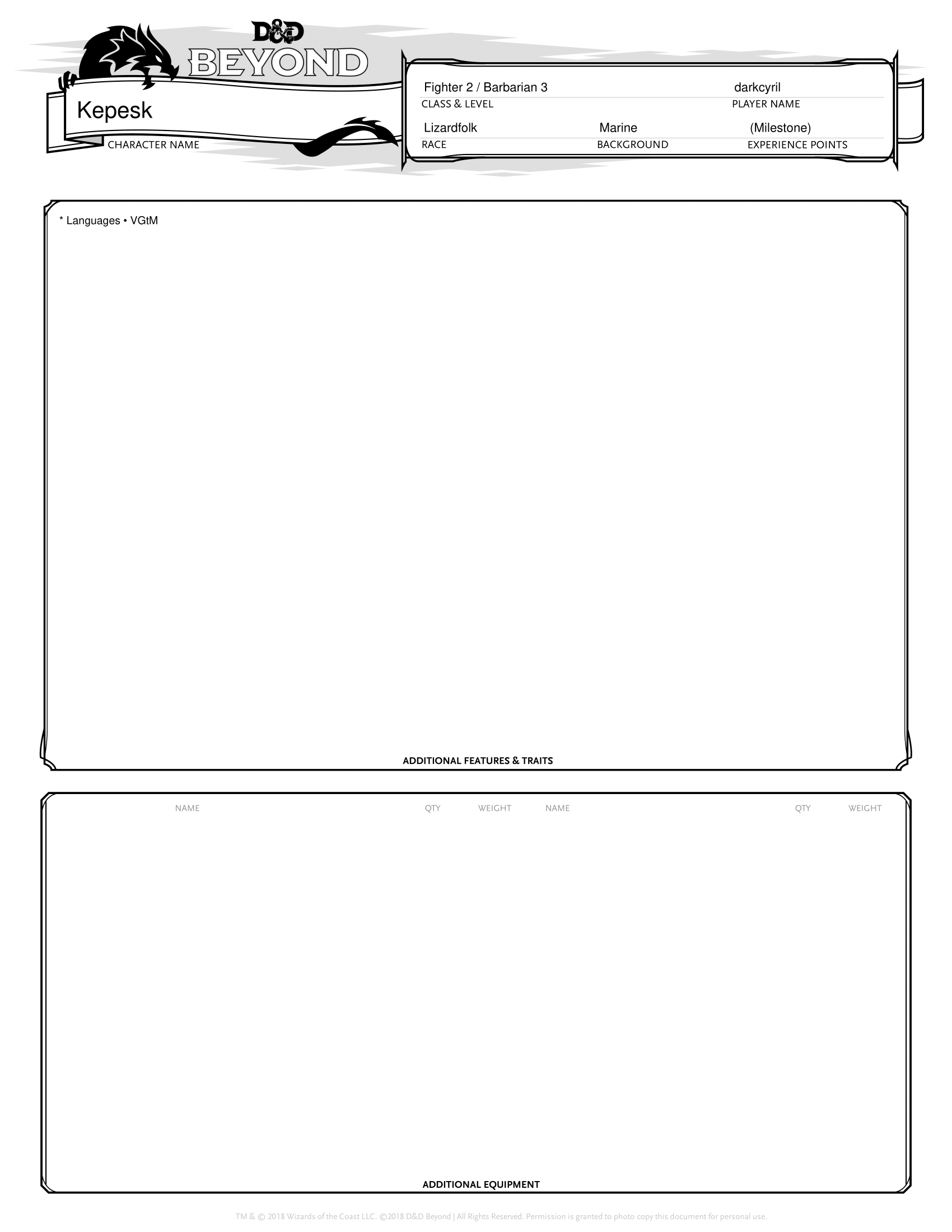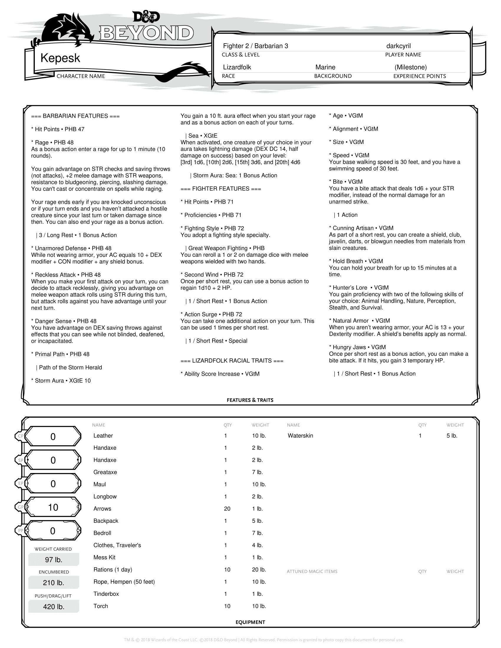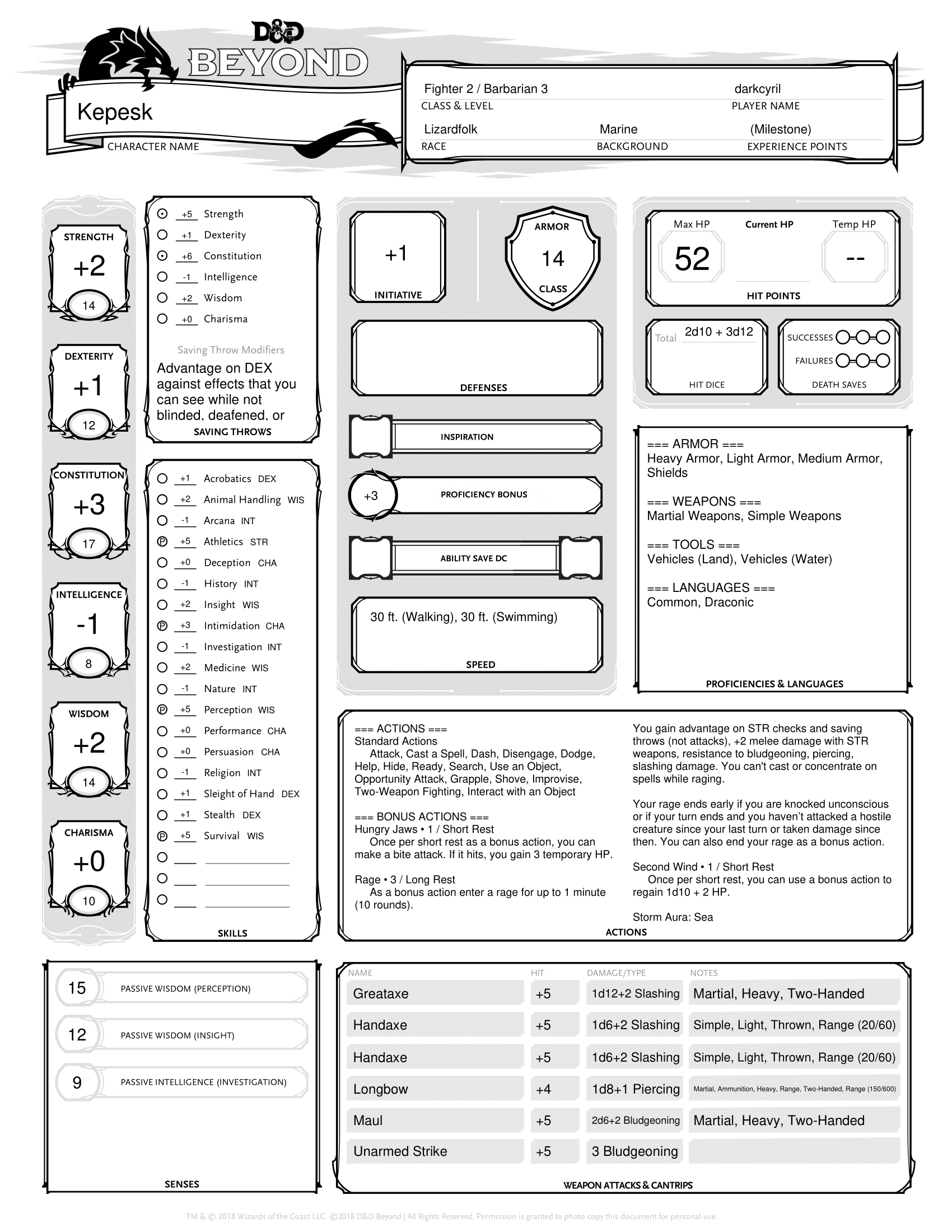 Last week I introduced you to Celcitorn, the young cleric of Procan. In his background, we also met the lizardfolk Kepesk. This week we take at look at what his character looks like, again exploring some of the new background options from Ghosts of Saltmarsh.