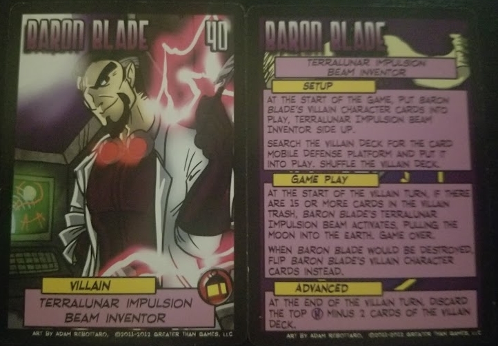 The cards themselves are nice and solid cardstock and the art direction is absolutely fantastic. They’ve really dialed in on the “silver age style” that the game draws so much of its inspiration from and the new cards have been a joy to look at. Furthermore, the new card dividers have a very nice decklist on the back as well as a quick reference to their complexity or difficulty. And no longer do we have multiple villain cards – instead everything is displayed on a 5 1/8 x 3 1/2 inch card that contains all the setup and rules for running that villain. Likewise, the heroes now boast slightly oversized 4 7/8 x 2 3/4 inch cards to help set them apart from the rest of the deck. And finally, the environment cards are printed in landscape instead of portrait to help differentiate them at a glance. Again, you can see the differences in both the hero cards and villain cards between the definitive edition and the original release.