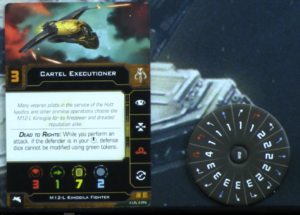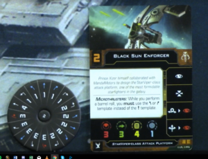The best change though has to be the dial. The old dial kind of sucked. It does not gain a lot of blue maneuvers, only the three straight in fact, but it gains several very useful maneuvers; hard one turns and three-speed tallon rolls. Hard ones were something the ship always felt like it should be able to do but never could. Due to the dual arcs, the tallon roll works in some ways like having a barrel roll, as you can shift laterally in either direction while maintaining firing arc in the same direction.