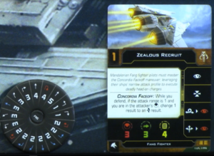 It now also has the title of Concordia Faceoff built into the ship. And its an out and out much better version. Now, you just get an evade result if you’re in an attackers front arc at range one. They no longer have to be in your arc. Granted, it does not help against mobile arcs or rear arcs. And it doesn’t do anything if you roll three native evades.